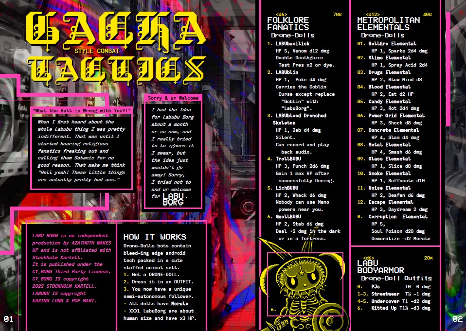 LABÜ BORG is an independent production by AZATHOTH WAKES UP and is not affiliated with Stockholm Kartell. It is published under the CY_BORG Third Party License. CY_BORG IS copyright 2022 STOCKHOLM KARTELL. LABUBU IS copyright KASING LUNG & POP MART. LABU-BOTS is an independent production by AZATHOTH WAKES UP and is published under the Kill ENGN Third Party License.*Yes he did, and he told me to say that.