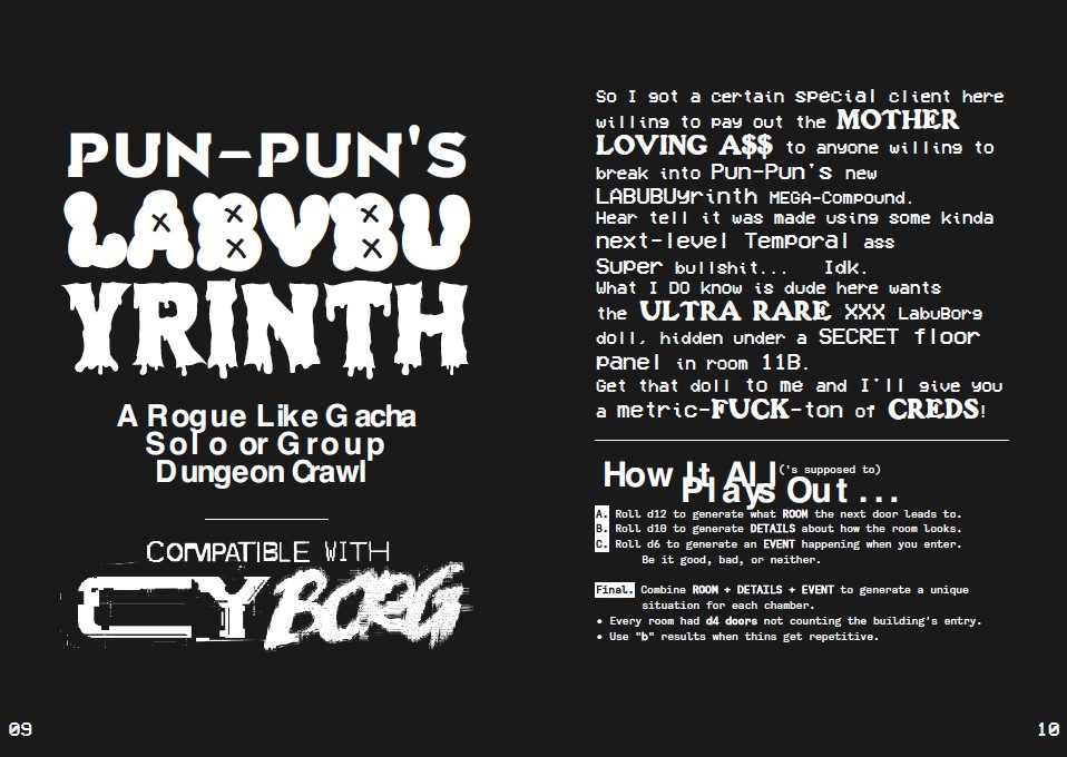 An adventure inspired by Labubu/ Borg lovers and haters alike! This zine is absolutely jam packed with content, we got: